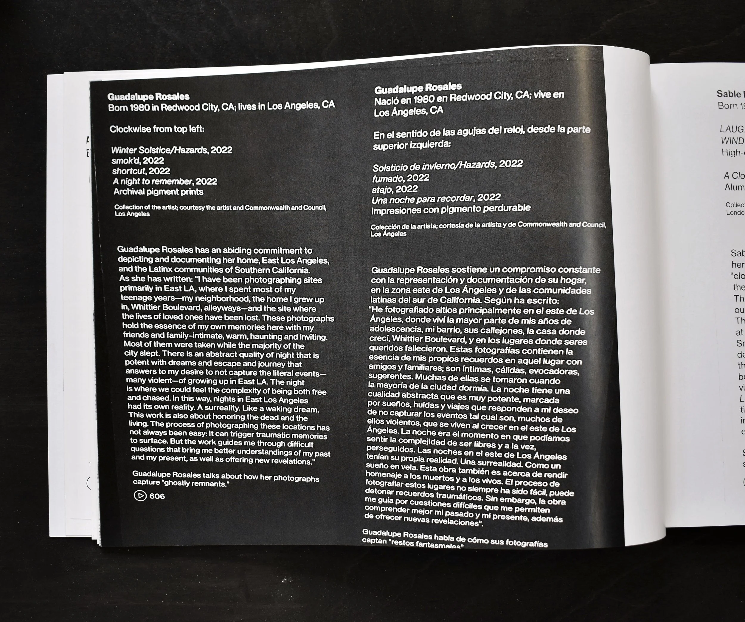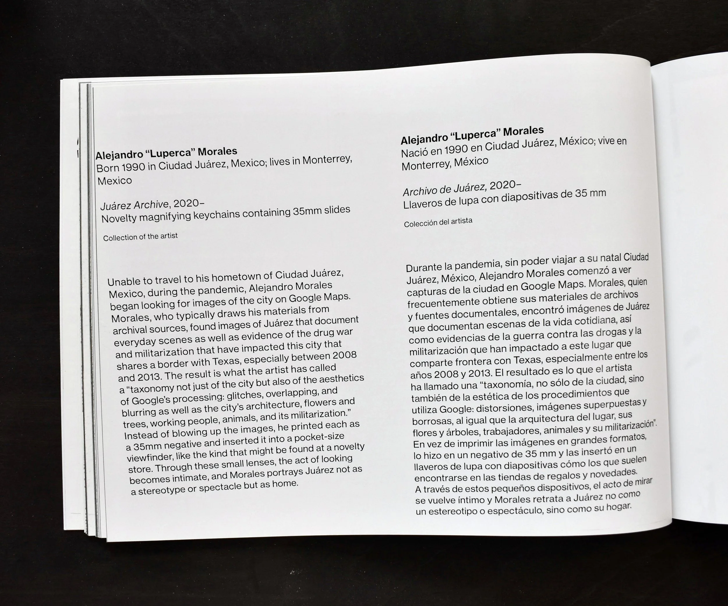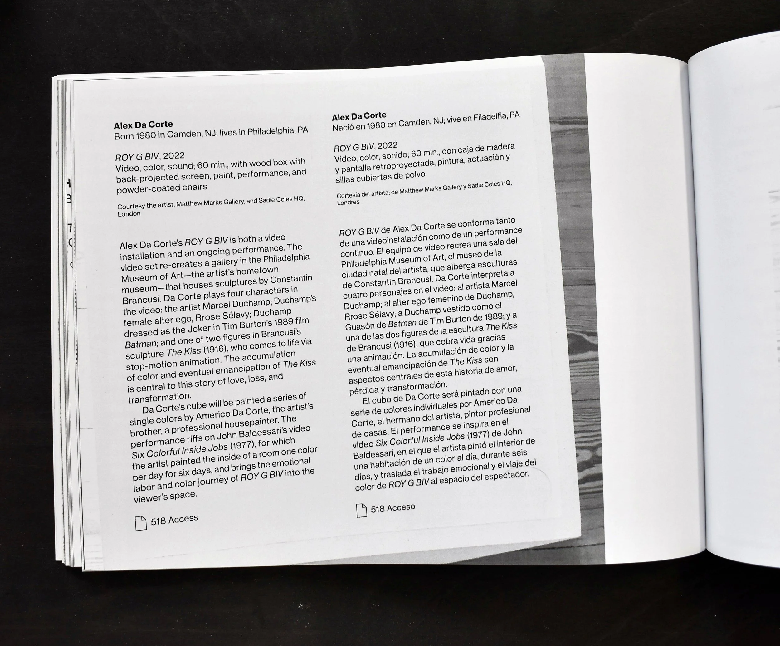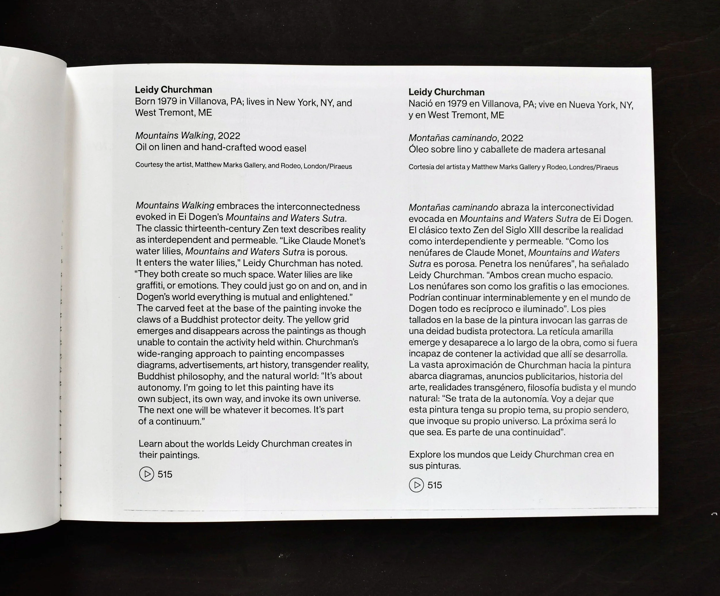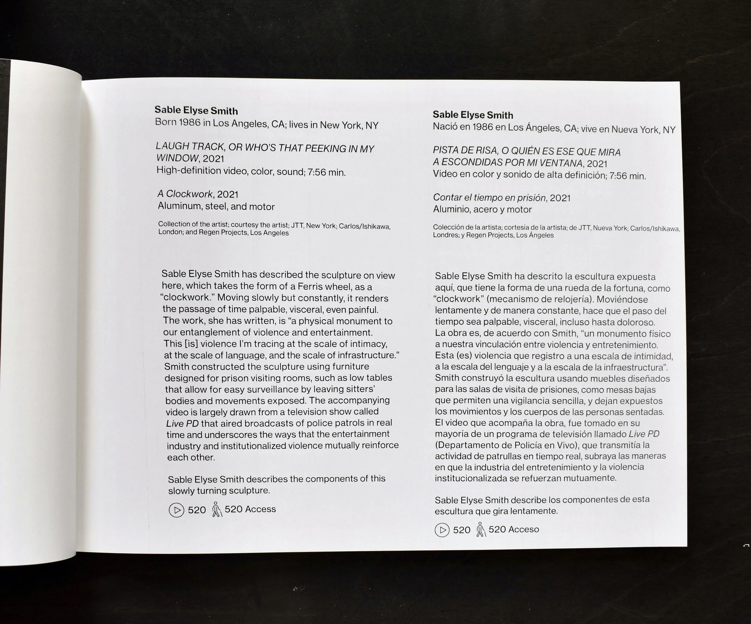 of the bilingual wall labels of the 2022 Biennial at the Whitney Museum of